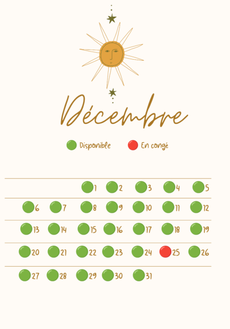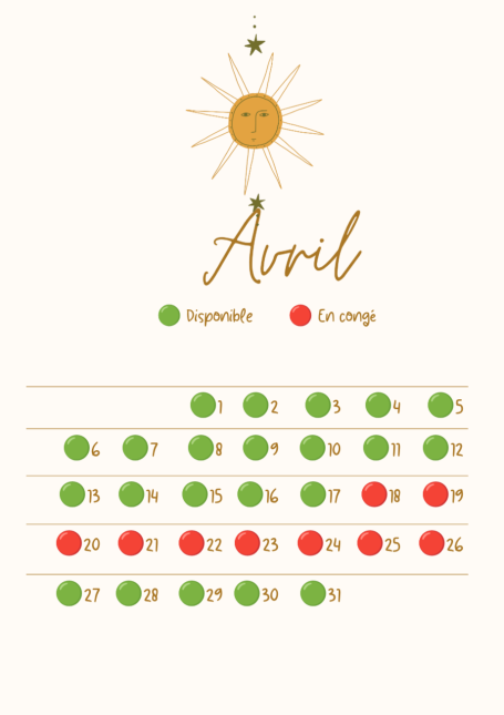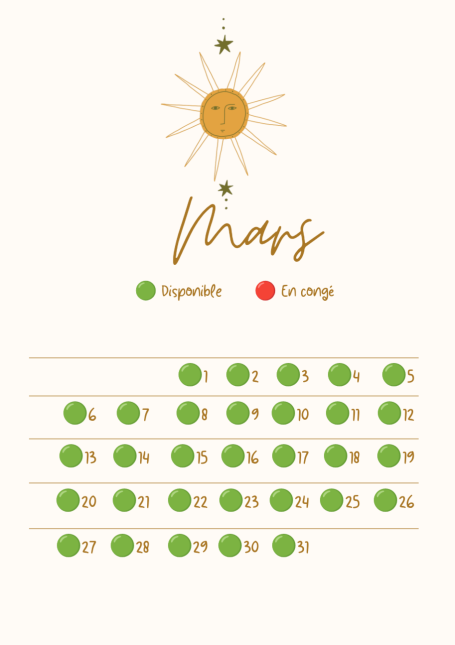 Calendrier des disponibilités