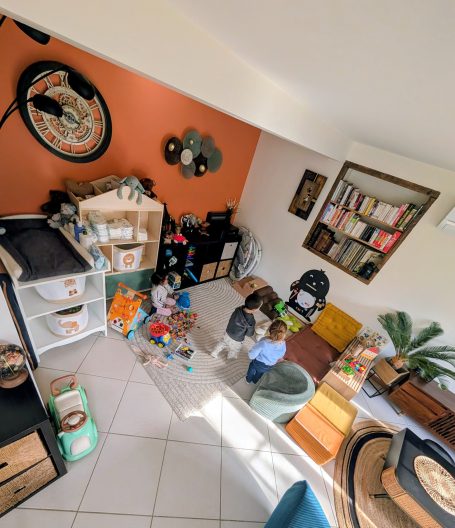 Le domicile offre des espaces adaptés à chaque moment de la journée : jeux, activités d’éveil, repas et temps de repos. L’aménagement est organisé de manière fonctionnelle afin de favoriser l’autonomie, la créativité et le développement moteur dans un cadre sécurisant.