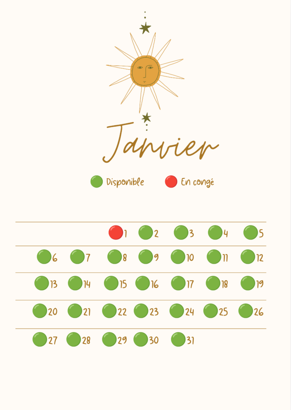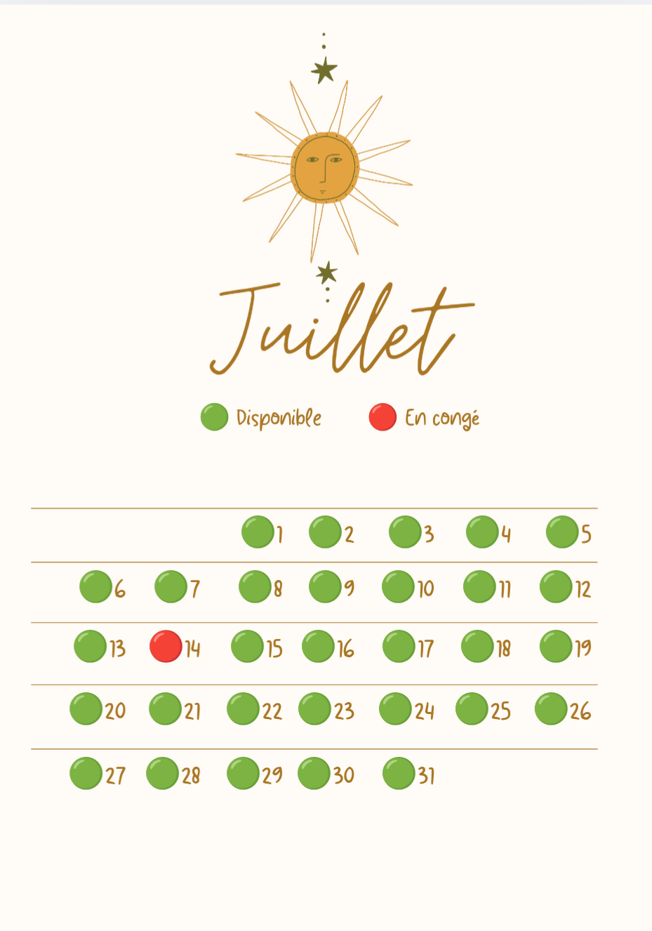 🟢Disponibilités 🔴Congés