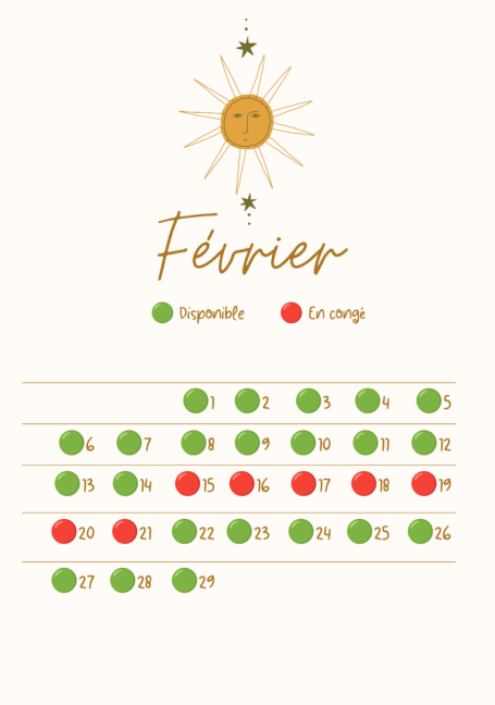 Calendrier des disponibilités